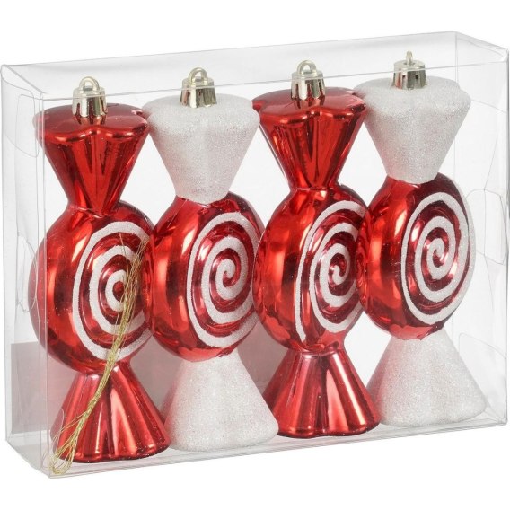 BOMBKA FORMÓWKA PLASTIKOWA BEZPIECZNA CUKIERKI 4SZT MICA to zestaw, który udekoruje choinkę i sprawi, że święta będą słodkie i beztroskie.