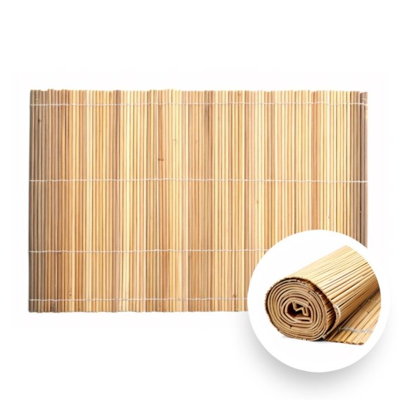 Wykonana ze szczapek bambusowych połączonych drutem, tworzy zwartą i estetyczną powierzchnię. Konstrukcja zapewnia częściową ochronę przed wiatrem oraz ogranicza widoczność, zachowując naturalny charakter materiału. Mata może być montowana do istniejących ogrodzeń, balustrad lub konstrukcji wsporczych.