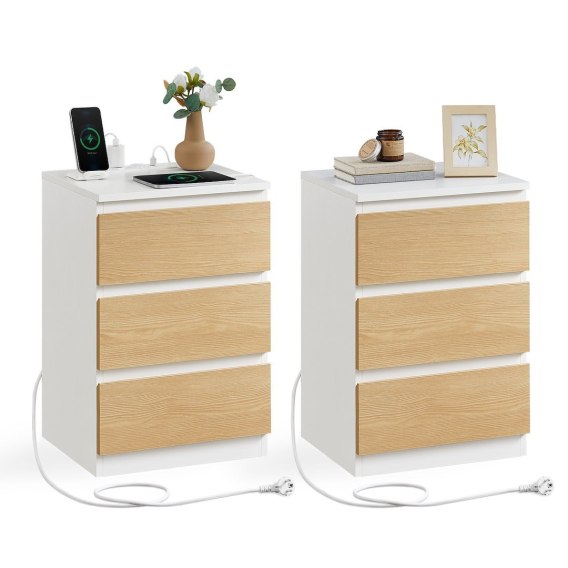 Biało-beżowe stoliki nocne z funkcją ładowania 2 szt.