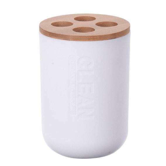 Biały pojemnik na szczoteczki do zębów Wykonany z tworzywa sztucznego i bambusa, przybornik na szczoteczki do zębów z czterema k