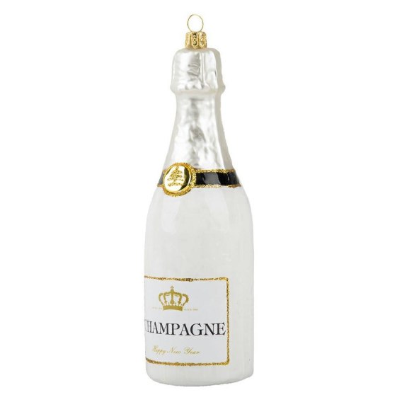 Dekoracyjna szklana bombka choinkowa, wzór "Butelka szampana biała".