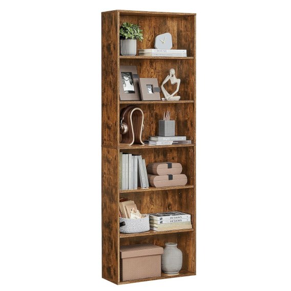 Regał na książki z 6 poziomami w stylu industrialnym wyróżnia się połączeniem rustykalnego brązu i prostych linii, które wprowadzają do wnętrza świeży, nowoczesny akcent. Konstrukcja optymalnie wykorzystuje przestrzeń pionową, nie zajmując wiele miejsca, a dzięki 4 regulowanym półkom (z wyjątkiem środkowej) możliwe jest przechowywanie książek, dekoracji czy akcesoriów o różnej wysokości. Solidne wykonanie zapewnia stabilność i trwałość, a otwarta forma ułatwia szybki dostęp do zawartości. Regał świetnie sprawdzi się w salonie, biurze, gabinecie czy sypialni, wspierając utrzymanie porządku i estetyczną aranżację wnętrza.