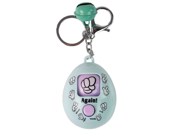 Breloczek ma w sobie popularną grę "kamień, papier, nożyce", możesz zagrać w nią z rówieśnikami, wybrać kto wykonuje dane zadanie. To kultowa i ponadczasowa gra. Naciskając środkowy przycisk, wirujący środek pokaże Ci odpowiednią łapkę ze znakiem. Idealny gadżet do zabawy, zajmie czas w oczekiwaniu w kolejce do lekarza lub na transport.