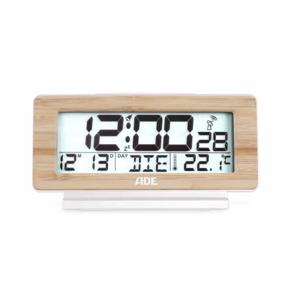 Budzik elektroniczny z kalendarzem i termometrem, 12,5 x 4 x 8,5 cm, bambusowa rama