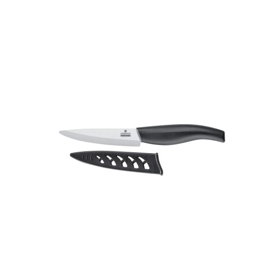 Nóż wykonany z ceramiki cyrkonowej jest niezwykle twardy, odporny na zużycie i długo zachowuje ostrość. Jest neutralny dla żywności i może być używany przez alergików.