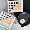 - Funkcjonalna konstrukcja - Dzięki specjalnym wgłębieniom na jajka, są one stabilnie umieszczone, co zapobiega ich toczeniu się i zmniejsza ryzyko uszkodzeń podczas przechowywania.