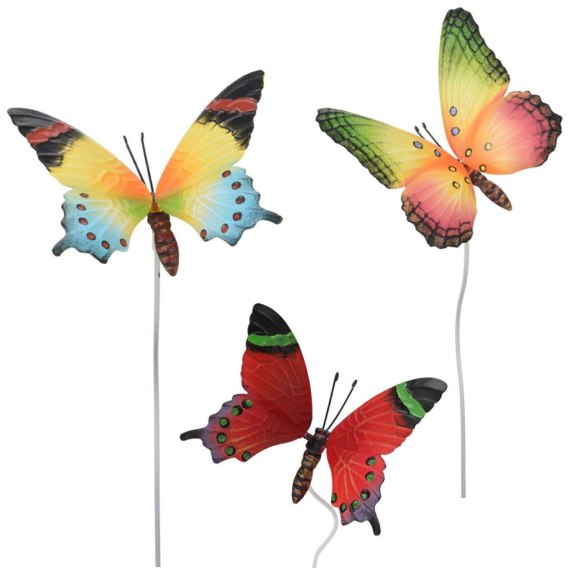 Metalowe motyle na patyku to wyjątkowa ozdoba do ogrodu, która doda kolorów rabatom, donicom i trawnikom. Wykonane z trwałego metalu, odporne na warunki atmosferyczne.