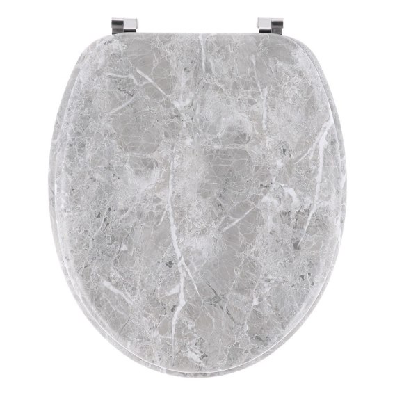 Elegancka deska sedesowa z wytrzymałego drewna to stylowe rozwiązanie do nowoczesnych łazienek. Pokryta realistycznym nadrukiem imitującym marmur w odcieniach szarości, wnosi do wnętrza luksusowy akcent. Dzięki uniwersalnemu rozmiarowi 18" pasuje do większości standardowych muszli WC. Wzmocnione zawiasy ze stali nierdzewnej zapewniają trwałość, stabilność i łatwość montażu. Powierzchnia jest gładka i łatwa do utrzymania w czystości, co zapewnia wysoki poziom higieny. Nowoczesny design w połączeniu z funkcjonalnością sprawia, że ta deska to nie tylko element użytkowy, ale również stylowy dodatek do wystroju łazienki inspirowanego minimalizmem lub stylem spa.
