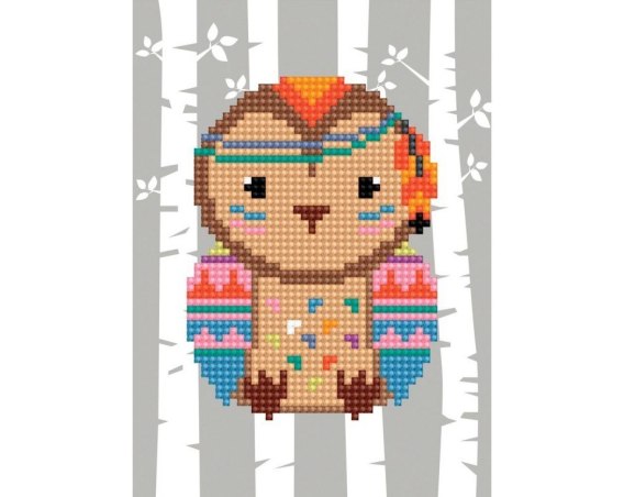 Kartonik do samodzielnego obklejenia plastikowymi diamencikami. Aby zacząć ozdabianie należy zdjąć folię z wierzchu naklejki - ponumerowane kółeczka są samoprzylepne. Następnie nakładamy dołączonym aplikatorem diamenciki w odpowiednim do numeru kolorze. Zabawa ta uczy dzieci koncentracji i skupienia, a także dopasowywania kolorów.