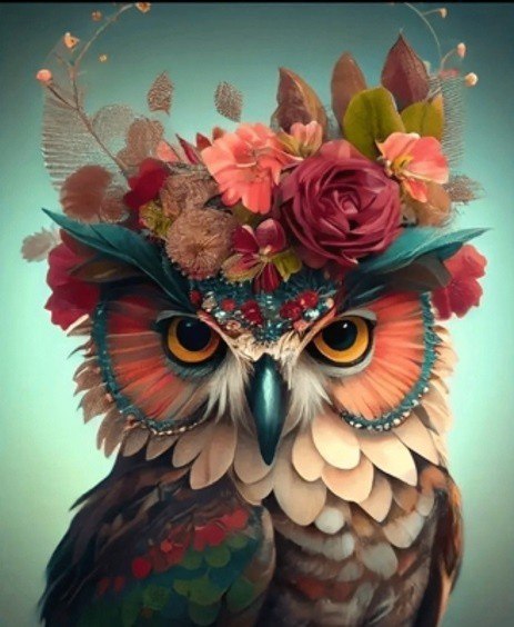 Diamentowa mozaika - Sowa z kwiatami