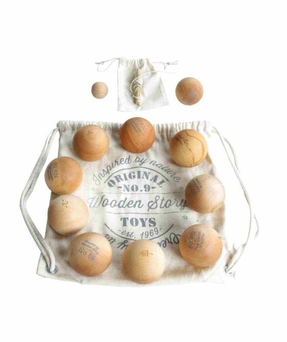 • Zestaw zawiera 8 drewnianych kul oraz 1 kulkę „cella"