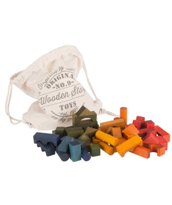 Delikatne w dotyku i pachnące lasem drewniane klocki marki Wooden Story to idealna propozycja dla dzieci, które uwielbiają kreatywną zabawę. Zapakowane w bawełniany worek, zapewniają wciągającą i rozwijającą rozrywkę. Zestaw składa się ze 100 kolorowych elementów, które pozwalają tworzyć fantazyjne budowle. Dzięki nim dzieci rozwijają wyobraźnię, pobudzają kreatywność oraz doskonalą koordynację ruchową.