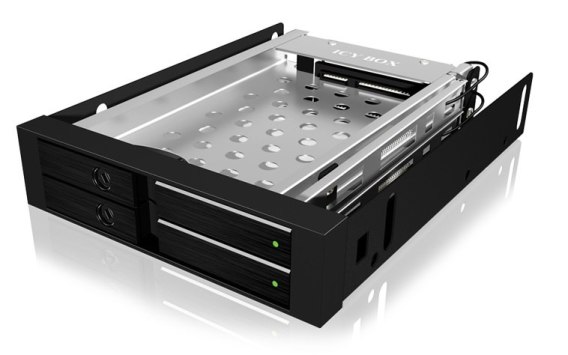 Aluminiowa kieszeń przeznaczona na dwa dyski 2.5 cala. Montowana w zatoce 3.5 cala. Materiał wykonania: Stal nierdzewna, aluminium oraz tworzywo sztuczne. Obsługuję standard SATA I (1.5 Gb/s), SATA II (3 Gb/s), SATA III (6 Gb/s). Hot Swap. Diody LED. Blokada. Kolor czarny.