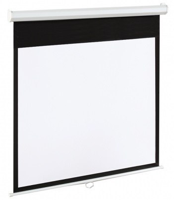 Ekran projekcyjny, o przekątnej 100-cal. Mocowanie: sufit, ściana. Format obrazu: 4:3. Materiał wykonania: matt white. Grubość materiału: 0.36 mm. Współczynnik odbicia światła: 1.0 Gain. Kąt widzenia: 160 stopni. Materiał obudowy: metal. Uchwyt na dole ekranu. Smycz ułatwiająca zwijanie oraz rozwijanie ekranu.