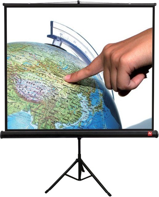 Ekran projekcyjny na trójnogu o wymiarach powierzchni projekcyjnej 175 x 175 cm w formacie 1:1. Powierzchnia projekcyjna Matt White.