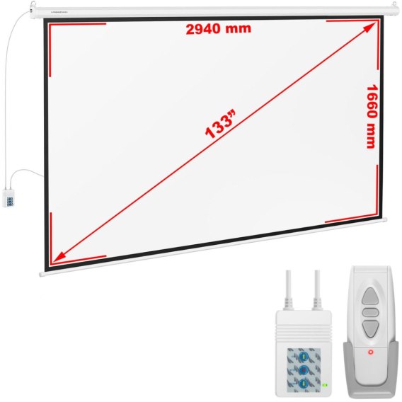 Ekran projekcyjny elekryczny ścienny sufitowy matowy biały 133'' 302x201 cm 16:9