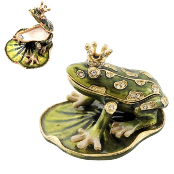 Ekskluzywne, bogato zdobione metalowe pudełeczko z kryształami - Żabka - B0746-54