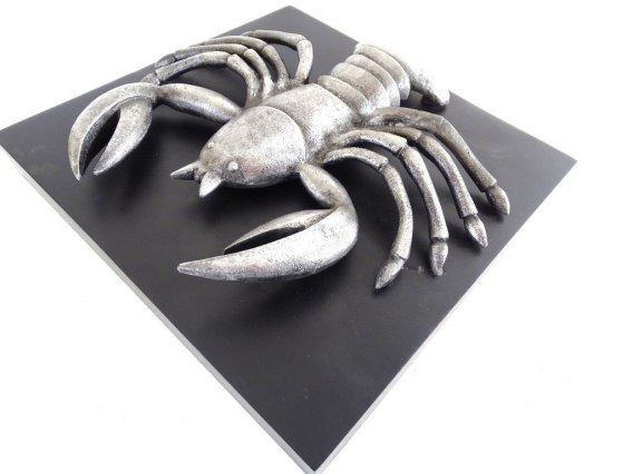 Figurka dekoracyjna CAN przedstawia stylizowany wizerunek zodiakalnego Raka. Produkt utrzymany jest w srebrnej kolorystyce. Wykonana z aluminium, co zapewnia trwałość i estetykę. Figurka osadzona na czarnej, drewnianej podstawie. Produkt rekomendowany jest do dekoracji pomieszczeń urządzonych w stylu glamour oraz art déco.