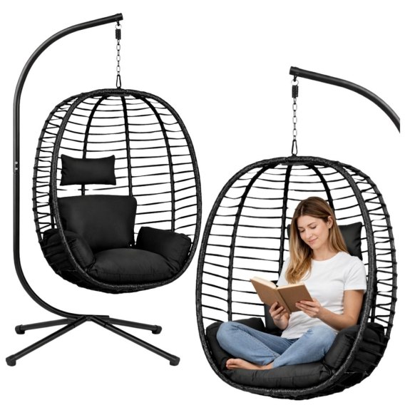 FOTEL WISZĄCY KOSZ KOKON OGRODOWY BUJANY LEAN CZARNY