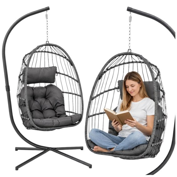 Stylowy i niezwykle wygodny fotel wiszący w formie kokonu to doskonałe rozwiązanie dla osób ceniących relaks i nowoczesny design. Idealnie sprawdzi się w ogrodzie, na tarasie, balkonie, a nawet we wnętrzach, tworząc przytulne miejsce do odpoczynku. Jego elegancka forma oraz uniwersalna kolorystyka sprawiają, że łatwo dopasuje się do różnych aranżacji.