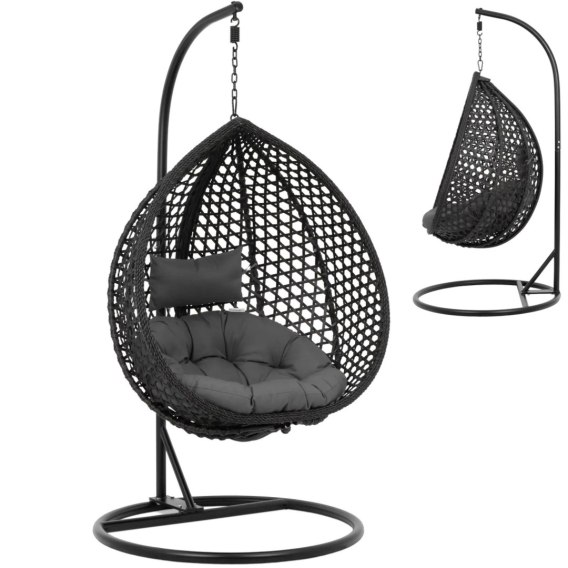 - - Przytulny fotel wiszący z ramą i wygodną poduszką o grubości 10 cm,