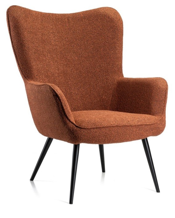 Fotel uszak ROKER to doskonałe połączenie nowoczesnego designu z komfortem użytkowania, idealne do każdego wnętrza. Jego wyprofilowane oparcie oraz komfortowe podłokietniki zapewniają wygodę podczas długiego siedzenia, co czyni go idealnym wyborem zarówno do salonu, jak i przestrzeni biurowej. Miękka tkanina boucle o eleganckim, teksturowanym wyglądzie w ciepłym, rdzawym odcieniu nie tylko dodaje przytulności, ale także sprawia, że fotel staje się stylowym akcentem dekoracyjnym. Dzięki solidnym, smukłym nogom wykonanym z metalu, mebel jest stabilny, a jego prosta, a zarazem elegancka forma łatwo wkomponuje się w różnorodne aranżacje wnętrz. Fotel ROKER ten nie tylko podnosi estetykę pomieszczenia, ale także zapewnia użytkownikom wygodę i relaks na co dzień. Jest to idealny uszak dla osób, które cenią sobie nowoczesny styl, funkcjonalność oraz komfort w jednym produkcie.