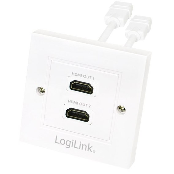 Gniazdo ścienne z dwoma portami HDMI.