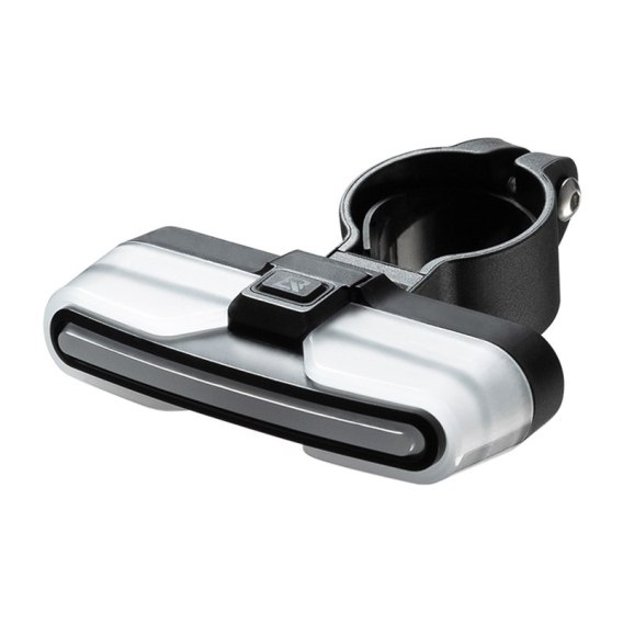Rockbros REX01 to tylna lampka rowerowa z wbudowanym czujnikiem hamowania, światła i drgań. Podczas zatrzymywania roweru automatycznie włącza się czerwone światło ostrzegawcze na 2 sekundy. Tryb SMART wykrywa ruch i samodzielnie uruchamia światło po wykryciu wibracji, a także wyłącza je po 2 minutach bezczynności. Czujnik światła dba o oszczędność energii — w dzień wyłącza lampkę, a nocą lub w tunelu automatycznie wznawia jej działanie. Wchodzący w skład zestawu bezprzewodowy pilot umożliwia sygnalizowanie skrętu w lewo i prawo oraz zmianę trybu pracy bez odrywania rąk od kierownicy.