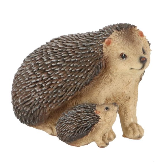 Urocza figurka przedstawiająca dorosłego jeża z małym jeżykiem zachwyca naturalnym wyglądem i świetnie wpasuje się w każdą przestrzeń - od domowego parapetu po leśny zakątek ogrodu. Wykonana z trwałej żywicy, odporna na mróz i promieniowanie UV.