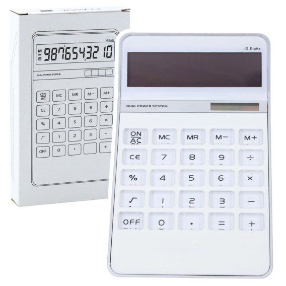 KALKULATOR BIUROWY BIAŁY - NOWOCZESNY DESIGN, PODWÓJNE ZASILANIE, 10-CYFROWY WYŚWIETLACZ