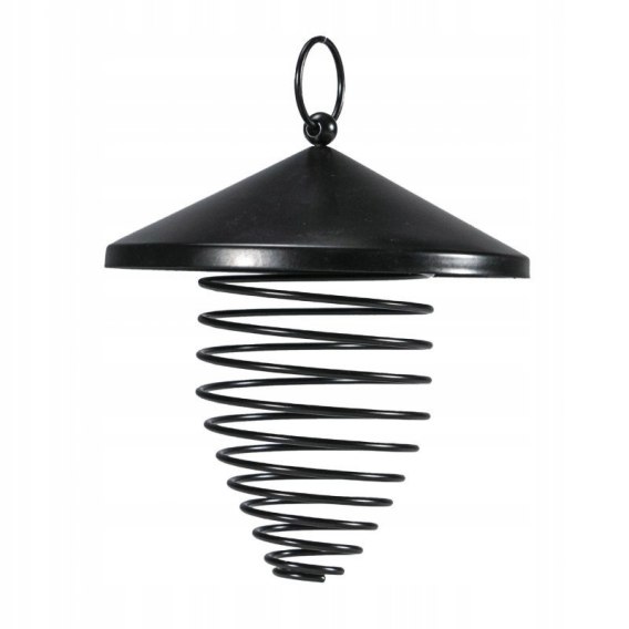 Metalowy karmnik na kule tłuszczowe dla ptaków do powieszenia. Kule tłuszczowe stanowią ważny element diety wolnożyjących ptaków, ponieważ dostarcza im dużą dawkę energii potrzebną im do utrzymania odpowiedniej temperatury ciała.