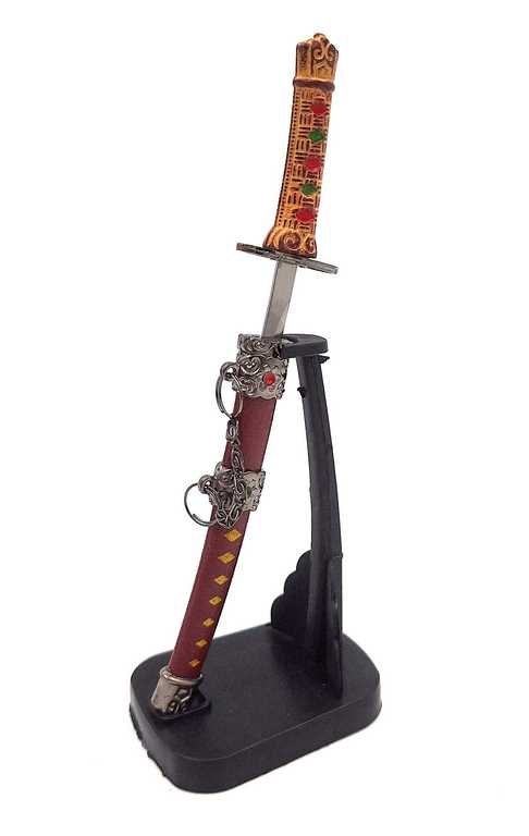 Nóż do papieru w kształcie katany to oryginalny dodatek do biura. Świetnie sprawdzi się jako upominek dla miłośnika kultury japońskiej lub kolekcjonera broni. Wysokość: 18cm.
