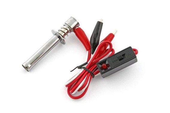 Klips - nasadowy z wyprowadzeniem, przełącznikiem i diodą led, wyprodukowany przez firmę Q-Model. Klasyczny przyrząd do nagrzewania świec - prosty i wygodny w użyciu, podłączany bezpośrednio pod panel startowy lub ogniwo 1,2 V - 2 V.Dodatkowa dioda LED informuje nas o stanie naładowania akumulatora, oraz o zamknięciu obwodu (sprawności świecy).Oznaczenie producenta: 384-1