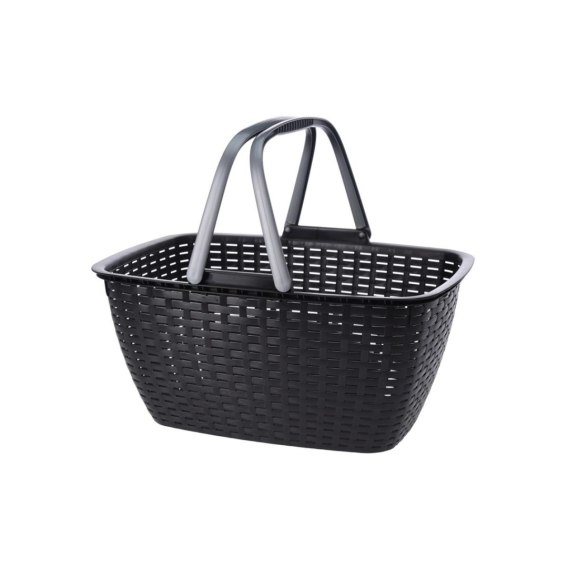 Kosz zakupowy ze składanymi rączkami Solidny, pojemny koszyk wykonany z mocnego tworzywa w kolorze antracytowym idealny na zakup