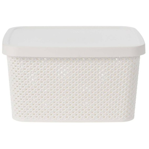 Koszyk do przechowywania biały 27 cm Biały pojemnik do przechowywania z pokrywą wykonany z wytrzymałego tworzywa sztucznego