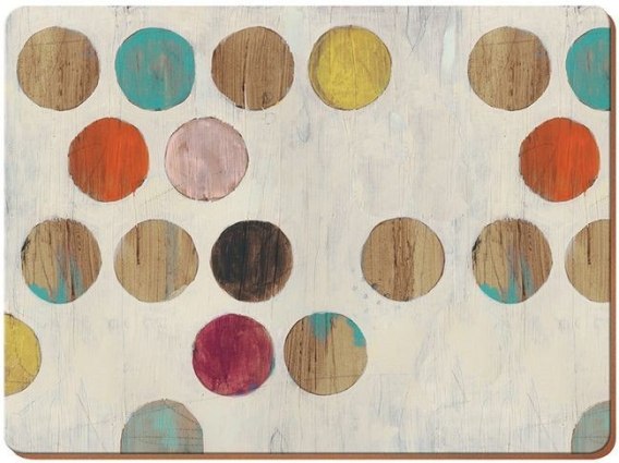 Zestaw czterech stylowych i wyjątkowo praktycznych podkładek korkowych premium. Podkładki ozdobione zabawnym wzorem kolorowych kropek retro na kremowym tle, z wizualnym efektem szorstkiej drewnianej powierzchni. Zwieńczone są lakierowaną powierzchnią, która jest cudownie gładka w dotyku.