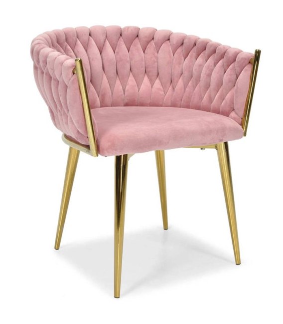 • Krzesło Welurowe Różowe GLAMOUR - Złote Nogi Pleciony Nowoczesny