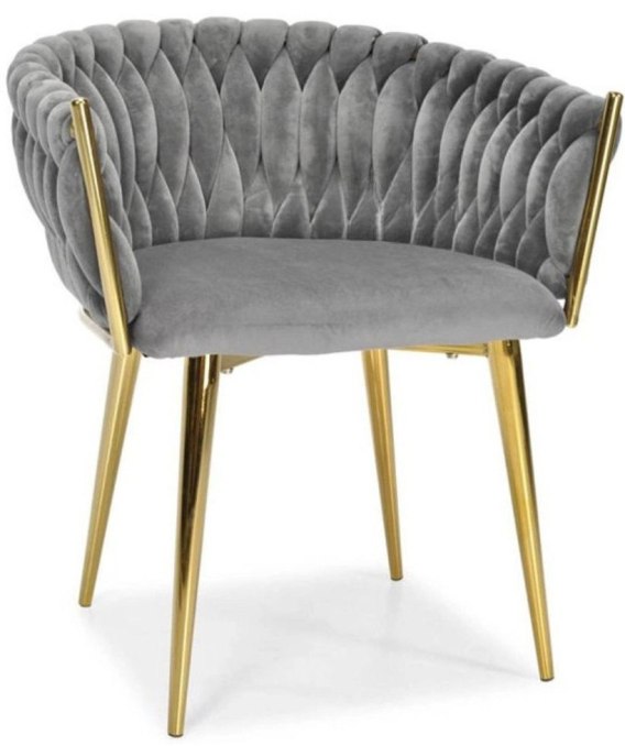 KRZESŁO WELUROWE SZARE GLAMOUR - ZŁOTE NOGI, PLECIONY NOWOCZESNY DESIGN