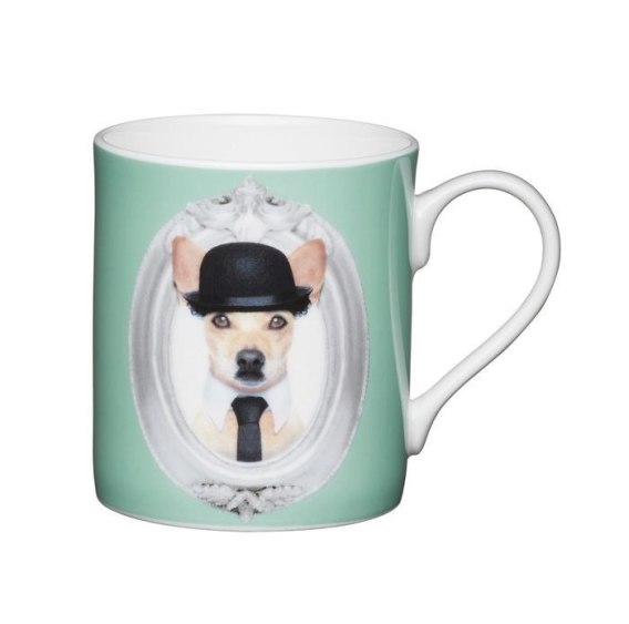 Kubek zielony od Creative Tops przedstawia uroczego psa w meloniku i krawacie w srebrnej ramce. Poręczne ucho pozwala wygodnie trzymać i podnosić kubek. Kubek wykonany jest z najwyższej jakość porcelany Fine China. Ciesz się ulubionymi gorącymi napojami każdego dnia!