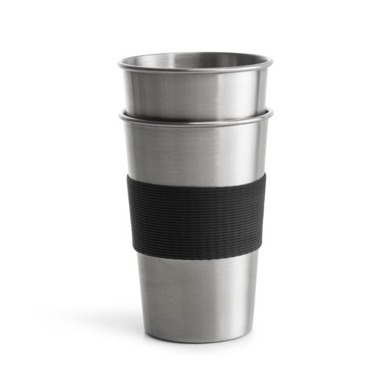 Zestaw dwóch kubków stalowych.