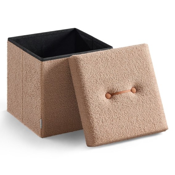 Stylowa pufa z miejscem do przechowywania łączy funkcjonalność z nowoczesnym designem, a elegancka powierzchnia z bukli dodaje wnętrzu oryginalnego charakteru. Wysoce elastyczna pianka i warstwa kompozytowa zapewniają komfort użytkowania, a solidna konstrukcja z paneli MDF gwarantuje trwałość. Pod pokrywą kryje się przestronna, 43-litrowa komora, idealna do przechowywania koców, pościeli i innych domowych akcesoriów. Prosta konstrukcja umożliwia szybkie rozłożenie, a możliwość składania pozwala zaoszczędzić miejsce, gdy nie jest używana. Wszechstronność sprawia, że pufa doskonale sprawdzi się w różnych pomieszczeniach - jako podnóżek lub stolik boczny w salonie, stołek do toaletki w sypialni czy praktyczny schowek w przedpokoju.