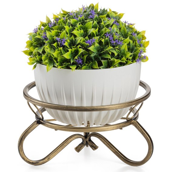 Kwietnik doskonale odnajdzie się zarówno we wnętrzach, jak i na balkonach czy tarasach. Jego solidna konstrukcja gwarantuje stabilność, a złoty kolor pięknie kontrastuje z zielenią liści i kolorami kwiatów.