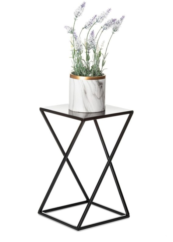 Kwietnik nowoczesny czarny stojący 40 cm Wykonany z metalu, prosty i stylowy stojak ZYG ZAK na kwiatki w kolorze czarnym