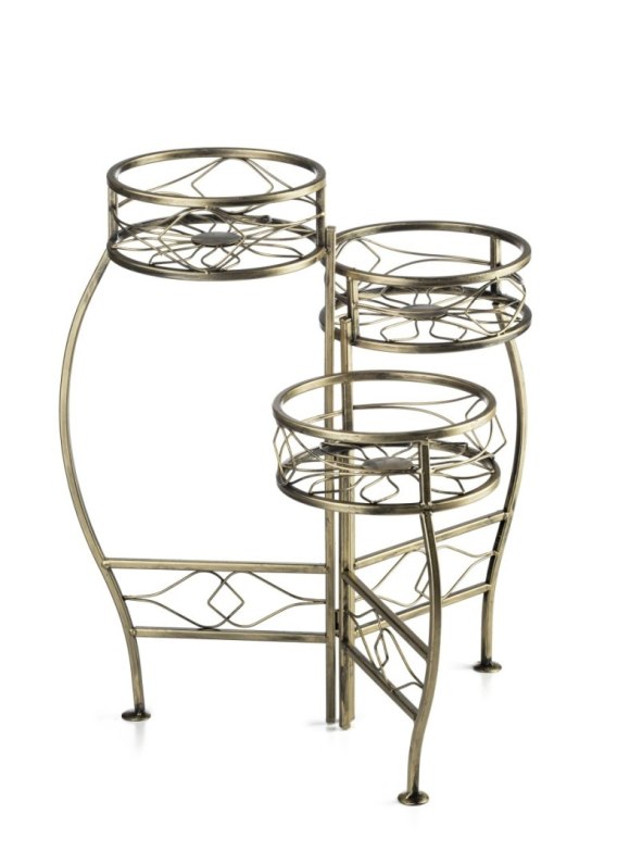 Kwietnik metalowy na trzy kwiaty. Wykonany jest w całości z metalu, z grubego pręta co zapewnia bardzo długie użytkowanie. Odporny na warunki atmosferyczne. Jest bardzo ciężki i stabilny. Komponuje się doskonale z każdym stylem. Świetnie wygląda zarówno w domu jak również w ogrodzie, na balkonie czy tarasie. Kwietnik jest ślicznie wykonany także oprócz cech praktycznych może stanowić element dekoracji.