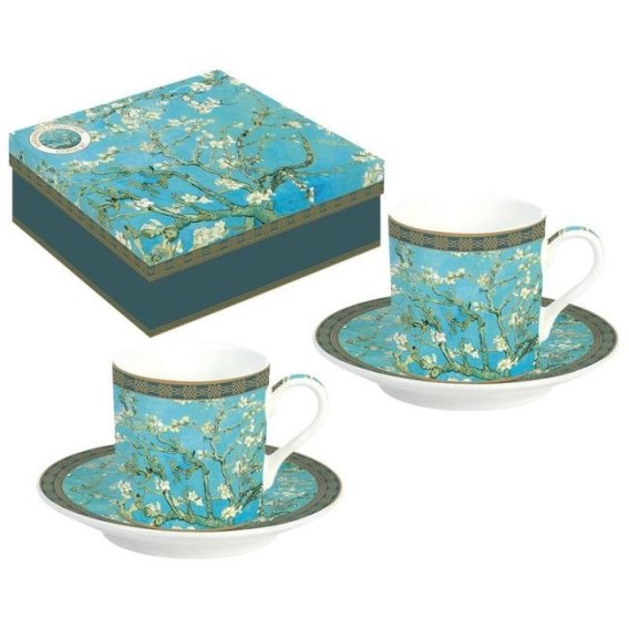 Filiżanki porcelanowe ze spodkami marki Easy Life, inspirowane obrazem „Kwitnący Migdałowiec" Vincenta van Gogha, to doskonały dodatek do każdej kolekcji zastawy stołowej, który możesz podarować sobie lub bliskiej osobie. Wykonane z porcelany najwyższej jakości, łączą elegancję z trwałością, stając się wyjątkowym elementem dekoracyjnym oraz doskonałym prezentem.