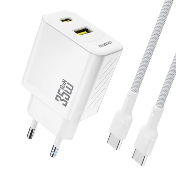 Dudao A27 MaxC to kompaktowa i wydajna ładowarka sieciowa z mocą do 35 W, która umożliwia szybkie i bezpieczne ładowanie wielu urządzeń. Wyposażona w dwa porty - USB-C oraz USB-A - pozwala na jednoczesne podłączenie różnych sprzętów, co zwiększa jej funkcjonalność w codziennym użytkowaniu. W zestawie znajduje się kabel USB-C o długości 1 m, wspierający szybkie ładowanie i transfer danych. Biała kolorystyka, lekka konstrukcja i kompaktowe wymiary sprawiają, że ładowarka idealnie nadaje się zarówno do domu, biura, jak i podróży.