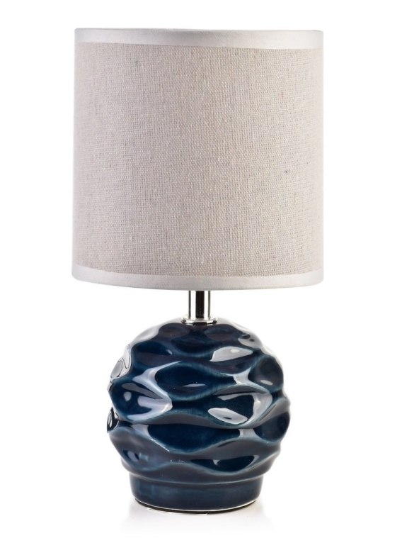 Stylowa lampka stołowa z ceramiczną podstawą w eleganckim granatowym kolorze to wyjątkowy element dekoracyjny, który doskonale podkreśli charakter każdego wnętrza. Artystyczna struktura podstawy nadaje jej unikalny wygląd, a tekstylny abażur w jasnym odcieniu równomiernie rozprasza światło, tworząc przytulną atmosferę w sypialni, salonie lub biurze. Lampka jest kompaktowa, co czyni ją idealnym rozwiązaniem na stolik nocny lub biurko. Wysoka jakość wykonania gwarantuje trwałość i estetykę. To praktyczne i stylowe oświetlenie, które łączy funkcjonalność z dekoracyjnym charakterem, dodając wnętrzu nowoczesnej elegancji.