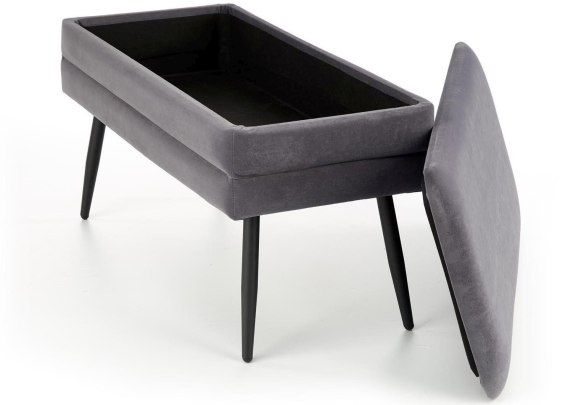 • Ławka tapicerowana Velva popielata Stalowe nogi w kolorze czarnym, obicie wykonane z wysokiej jakości welurowej tkaniny, mebel d