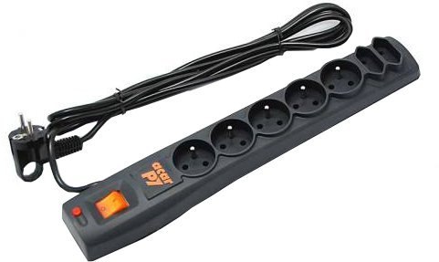 Listwa zasilająco-filtrująca z zabezpieczeniem przeciwprzepięciowym siedmiu urządzeń (pięć gniazd z bolcem i dwa gniazda płaskie). Posiada system ochrony przeciwporażeniowej oraz system porządkowania przewodów.