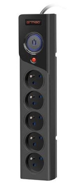 Listwa zasilająca wyposażona w 5 gniazd typu E. Posiada przewód o długości 5 m.